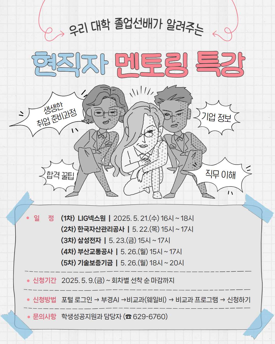 「현직자 멘토링 특강」 및 「PKNU 취업특강 WEEK」프로그램 참여 모집